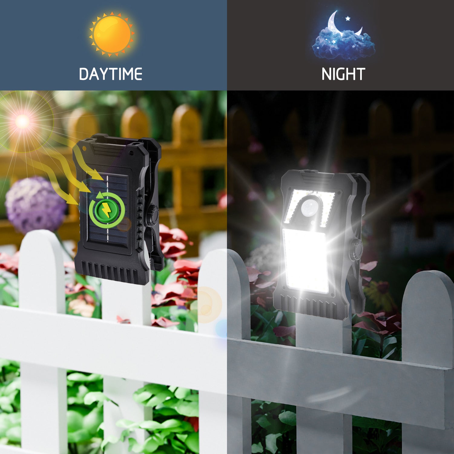 This compact solar light features 3 lighting modes, motion detection, dual charging (solar & USB), and easy clip or screw installation. IP45 rated for light outdoor use—ideal for camping, balconies, travel, and more.